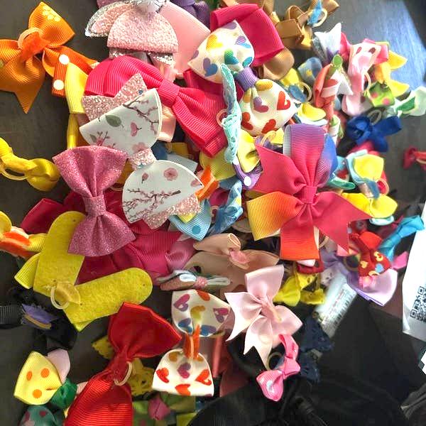 Randomly mixed dog grooming bows at a wholesale price! All have an alligator clip attached. No you cannot choose colors or styles.I have not decided whether I want to completely retire from doing this, or downsize and change directions just a little bit. I do need to make space in my craft room.