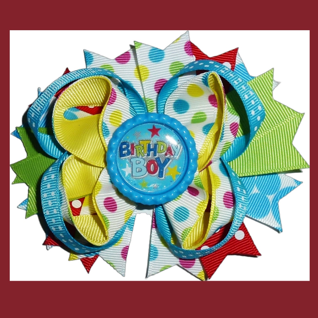 BIRTHDAY BOY polka dots dog collar slide accessory hair bows barrettes or bands (dc24)