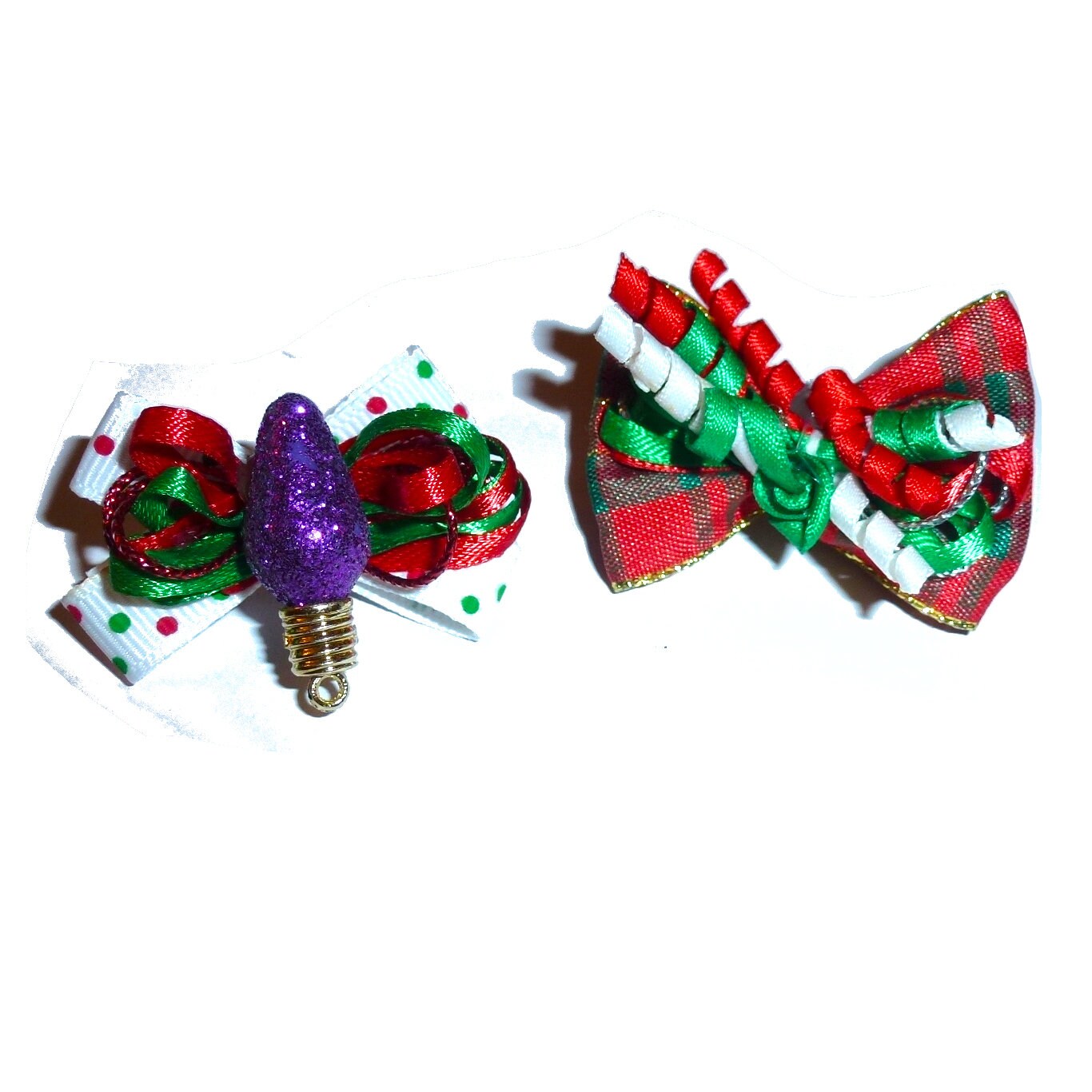 Christmas light bulb twirly korker pet hair dog bow barrettes or bands (FB456)
