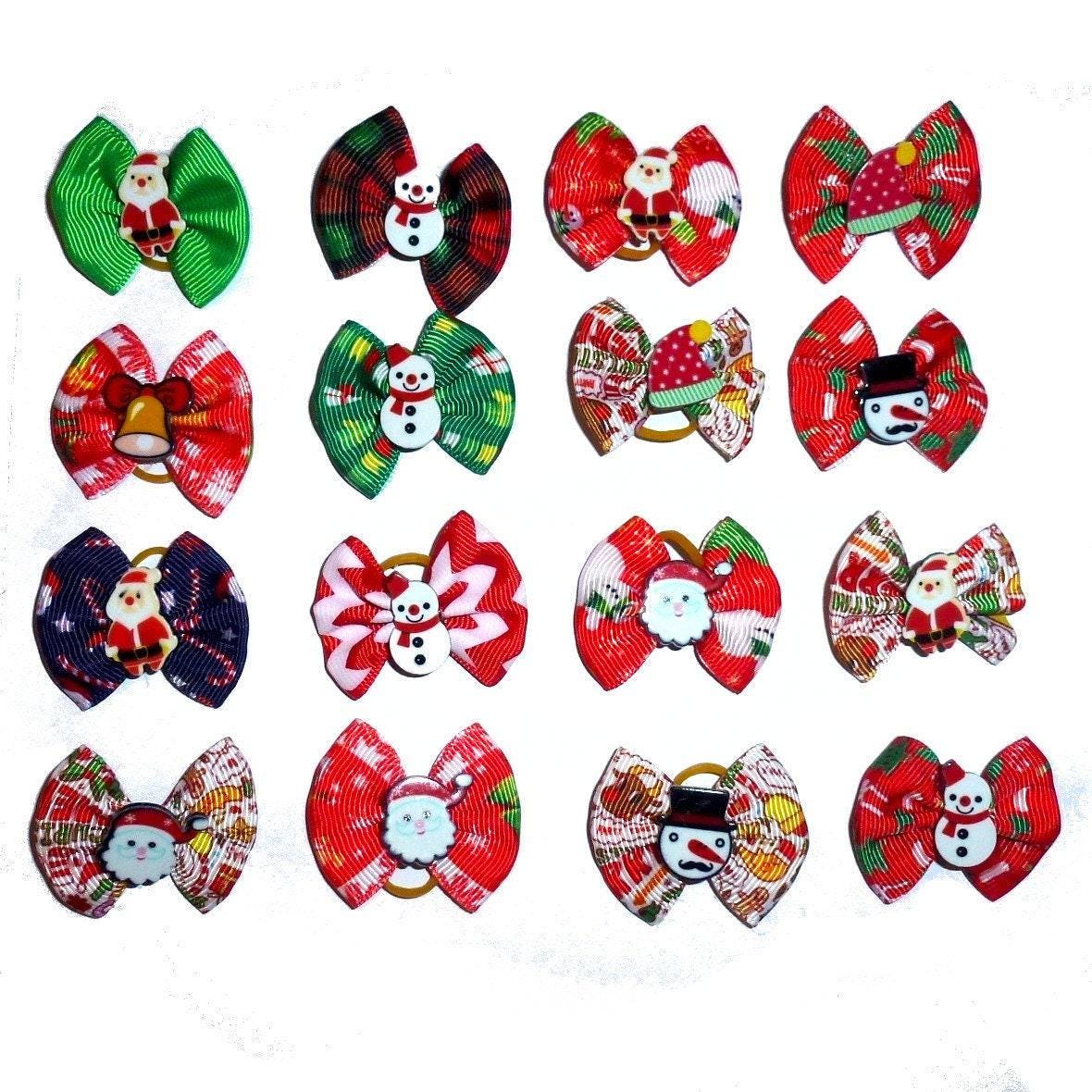 Christmas snowman santa claus bells dog groomers grooming pet hair bows (fb193)
