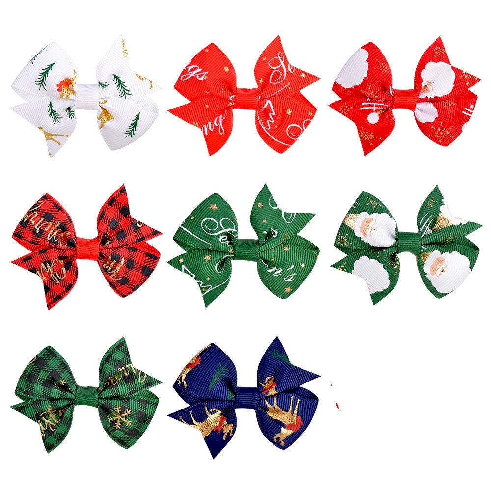 Christmas swallowtail Santa snowmen, trees elf green/red grooming pet hair bows (fb363)