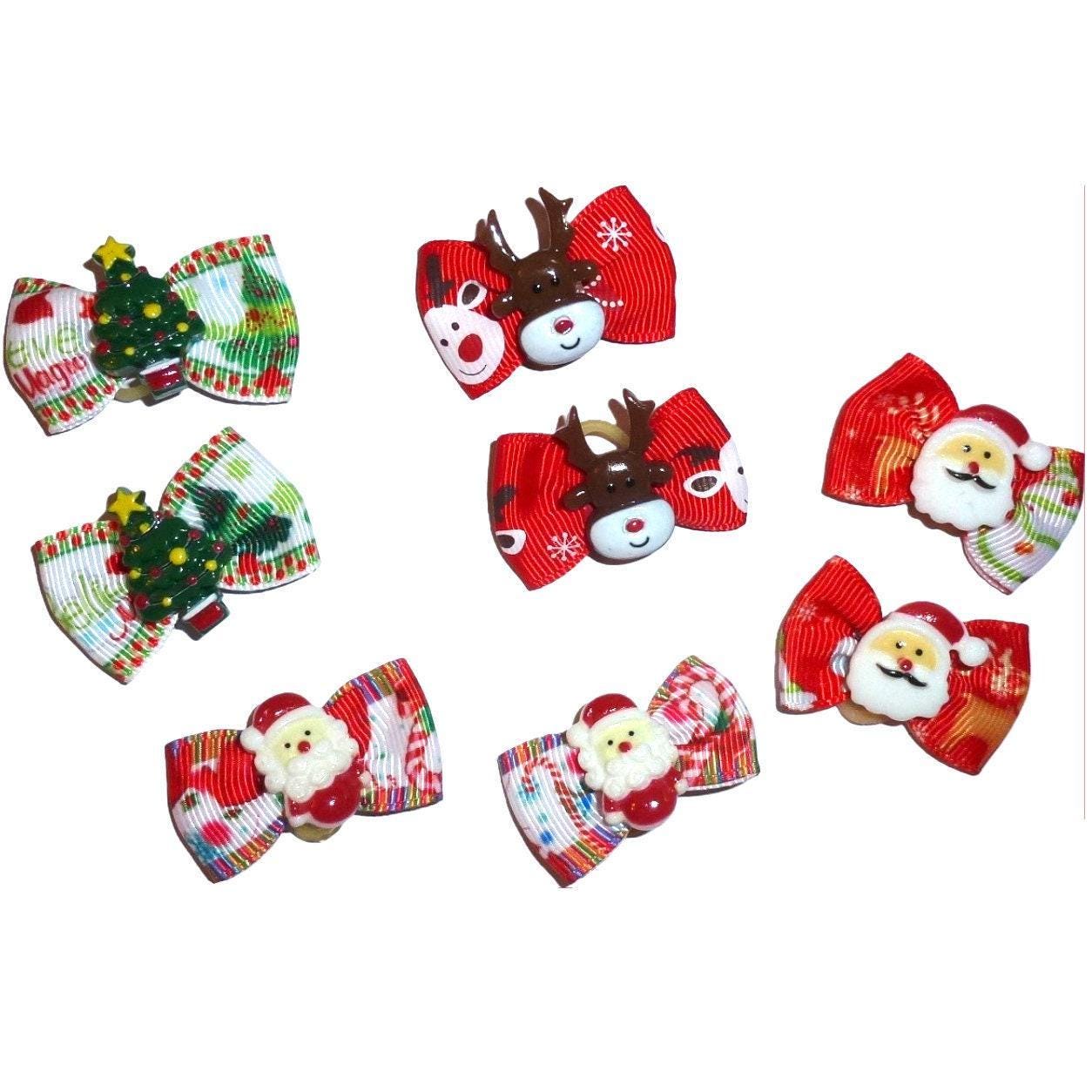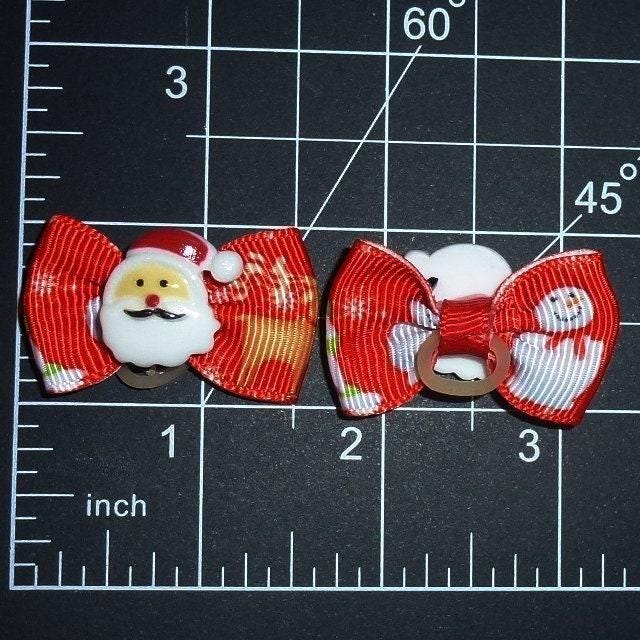Christmas tiny dog pet hair bows rudolph santa pairs (rc10)