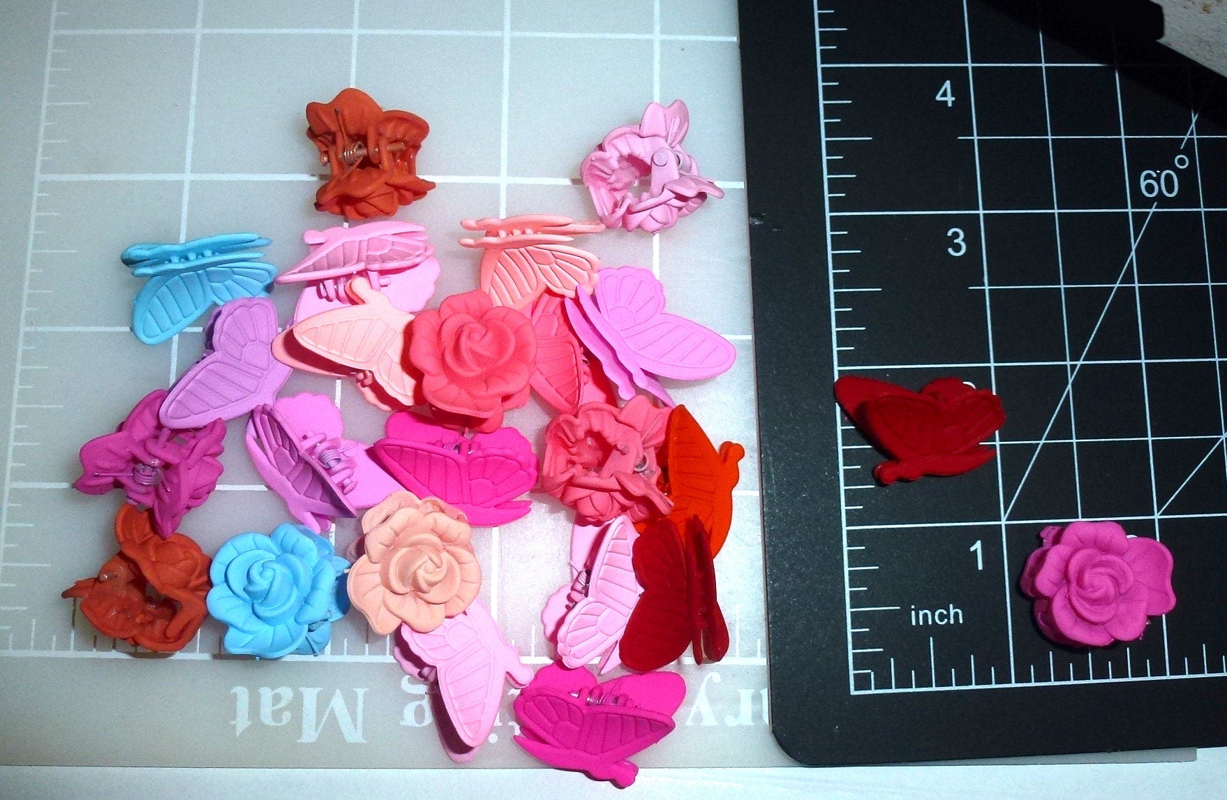 Dog bow barrettes tiny plastic butterfly and rose jaw hair pet clip (556)