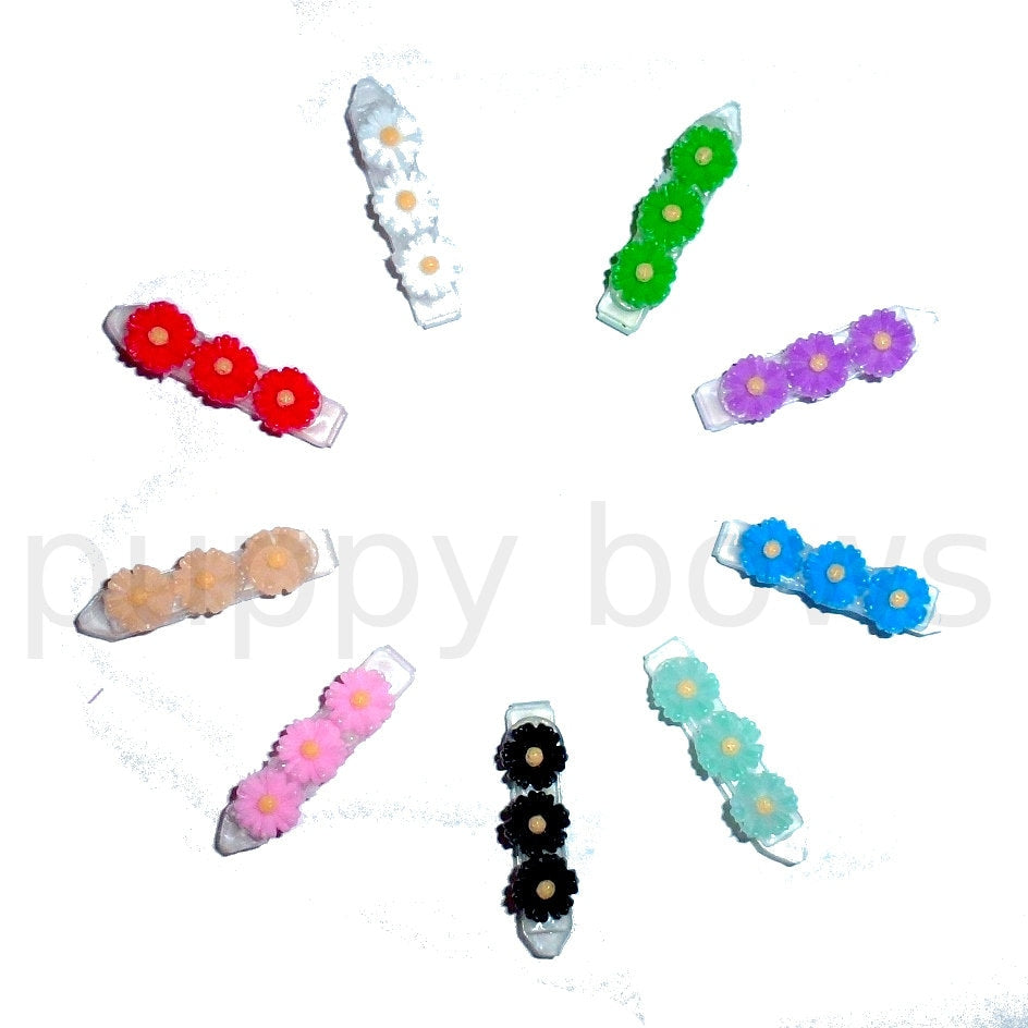Dog Bows ~ daisy flowers small bow less than 1" pet hair barrette clip 8 hairpins! (fb211)
