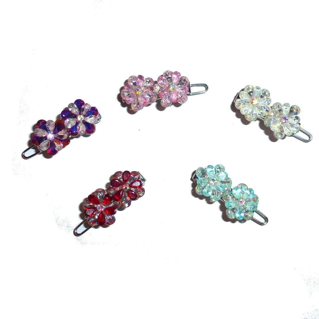 Stunning multi level 3D petal crystal flowers on a metal ball clip barrette. Measures 7/8"Each listing is for 1 clip no matter how many are shown in the photo.All of my hair barrettes can be used for pets with long hair, girls, women or for wedding accessories. I have been making barrettes and hair bows for over 20 years. Please check my store for more beautiful, stylish dog hair accessoriesI can ship internationally, but please request an invoice.Check my store for more dog bows, pet hair bows, dog bow accessories, dog tiaras, rhinestone barrettes for dogs, DIY hair bow making accessories, scarf bows for women, oversized bows for ladies, hair bows for girls, tiny snap clips for dogs, craft items and much much more.IF YOU NEED YOUR ITEMS FOR A SPECIAL EVENT THEN EMAIL ME BEFORE ORDERING!