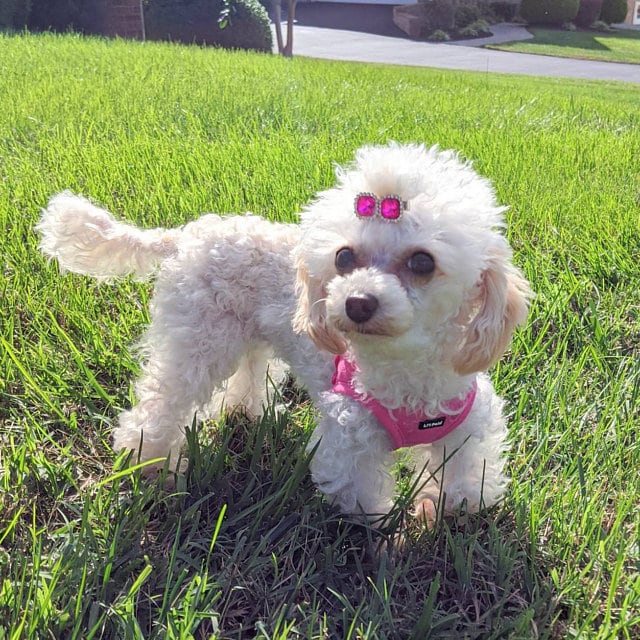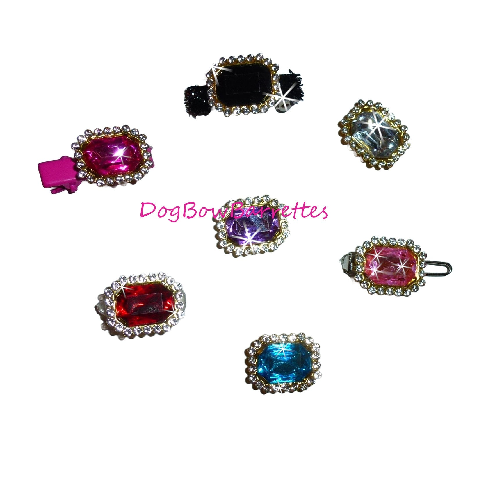 Dog hair clip TINY 3/4" rhinestones gems pink blue crystal rectangles barrette bow (100A)