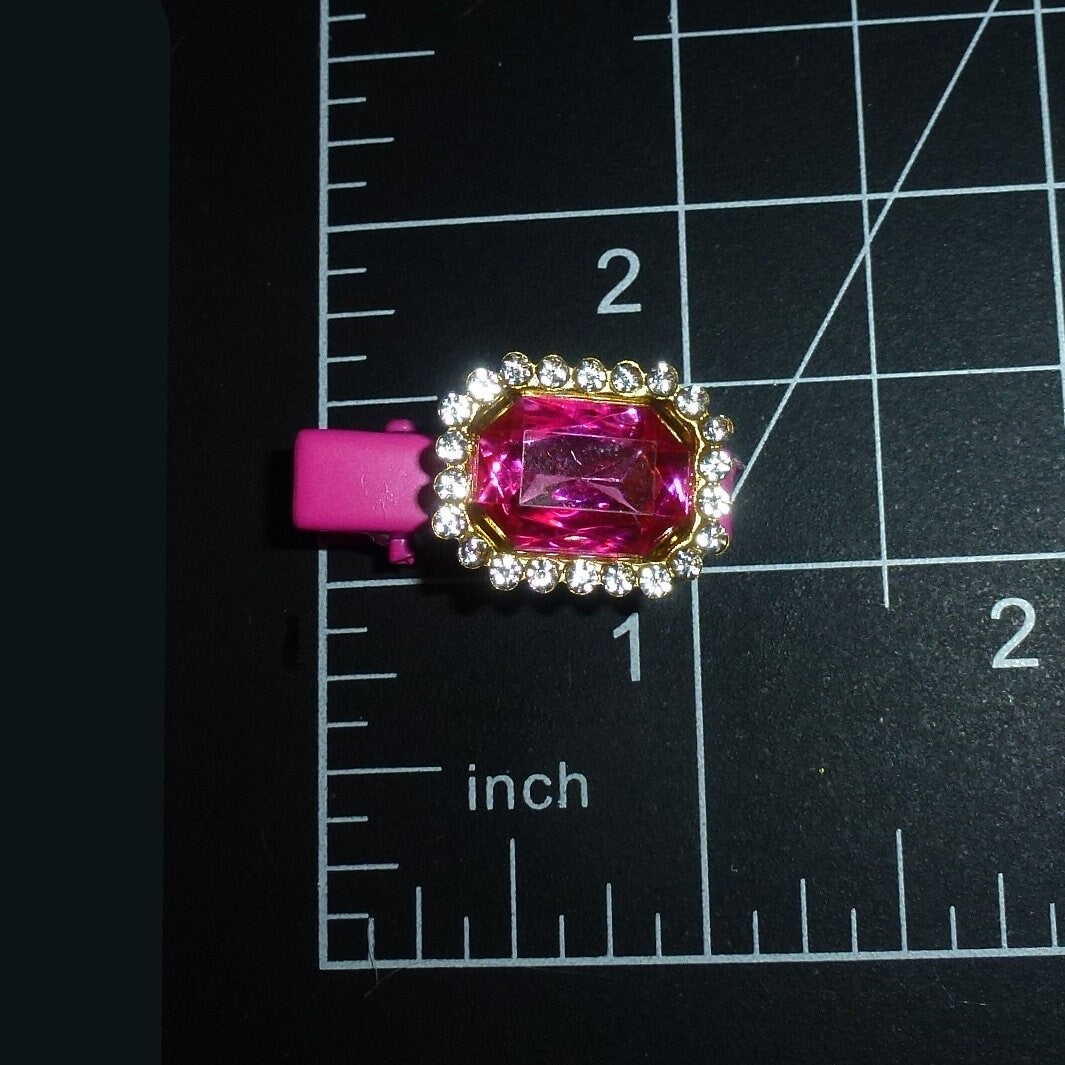 Measures 3/4" attached to a metal ball clip barrette rhinestone gems surrounded by lots of little crystal rhinestones. Each purchase is for 1 hair clip.