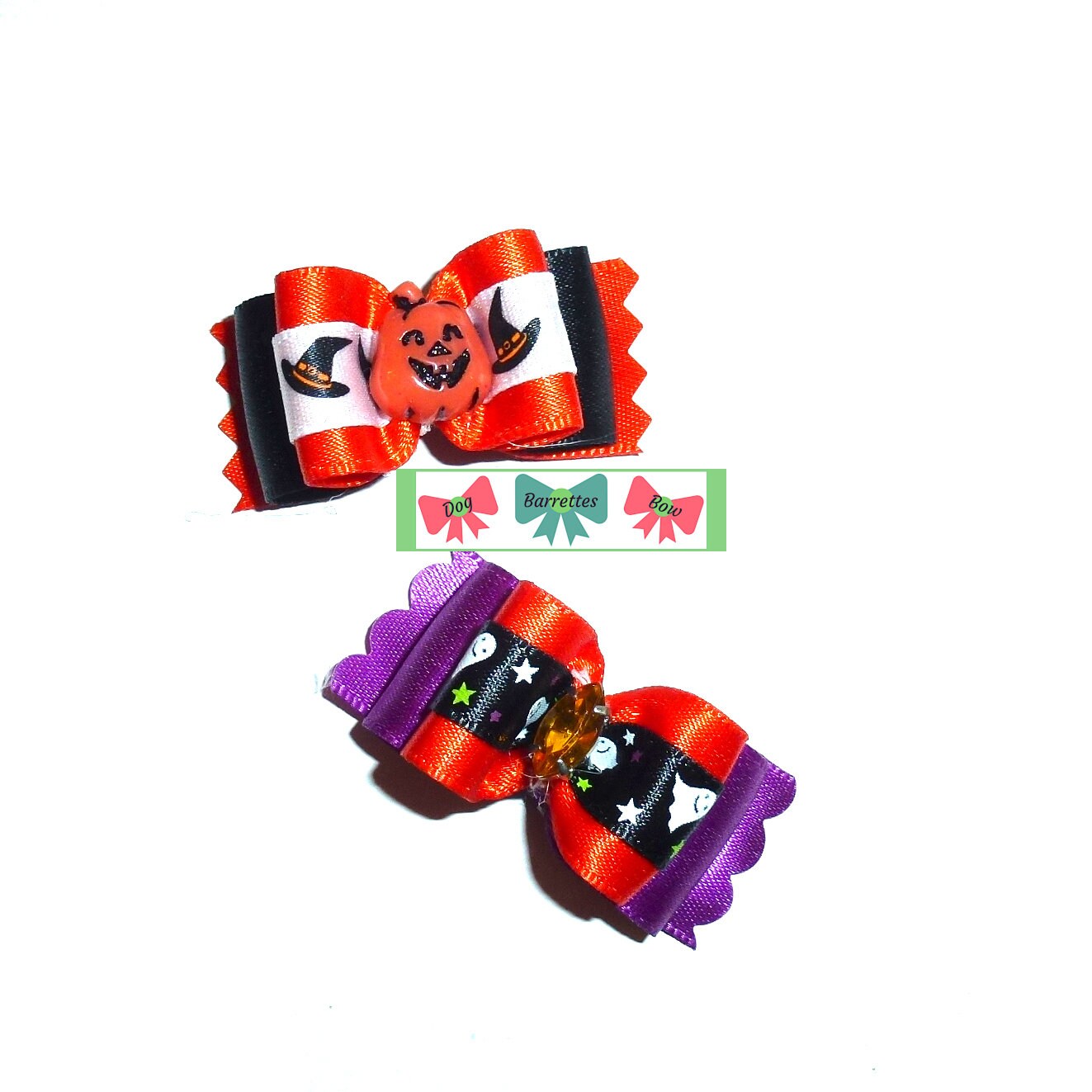 Halloween pumpkin satin show dog bows hair bow barrettes or bands (fb601)