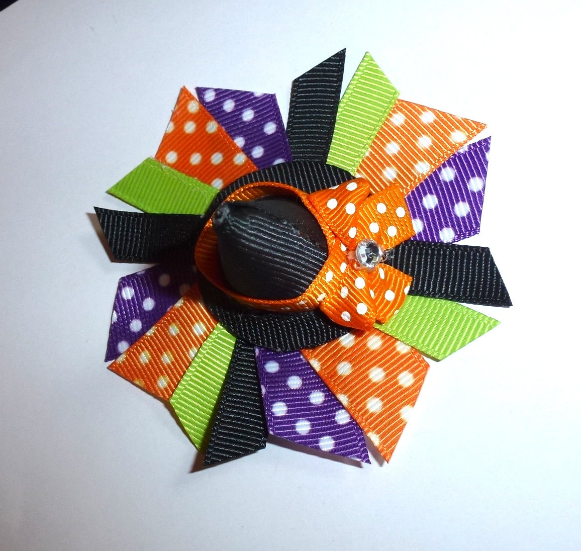 Halloween ribbon witches hat for dogs witch orange black bow hair barrette or headstrap (dc36)