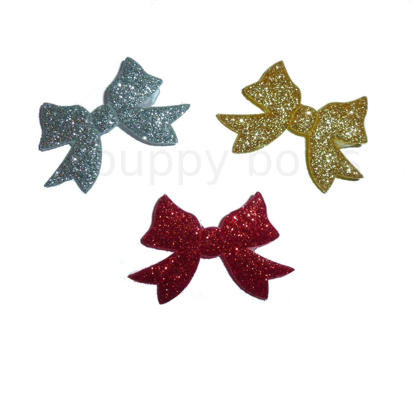 Puppy Bows ~ 3 glitter padded bowknots bows red silver gold pet hair bow - (fb219)