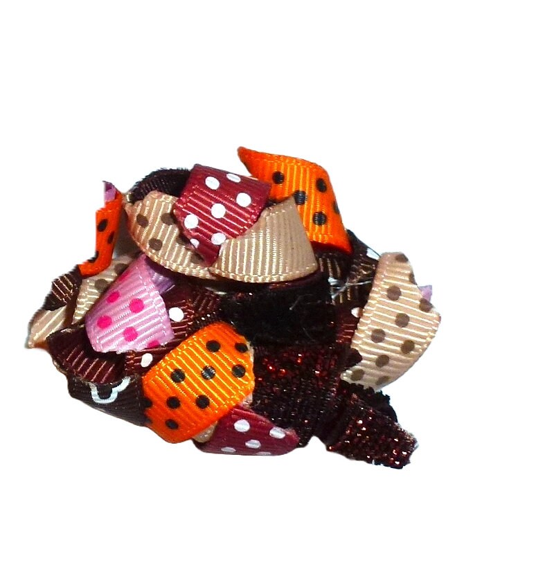 Puppy bows ~ 5pcs orange brown curlies pet hair bow barrettes or bands (FB30)