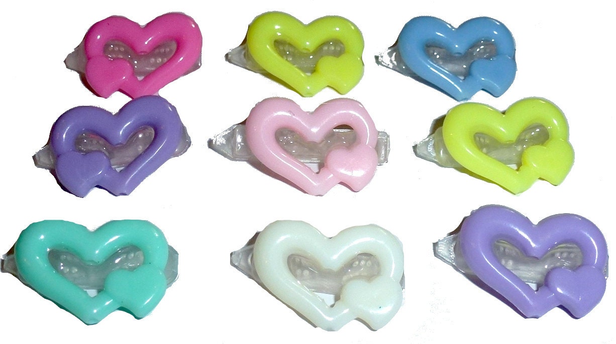 1" hearts on plastic barrette clips. Assorted colors. Includes 35 clips.