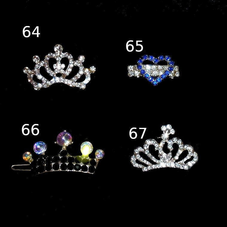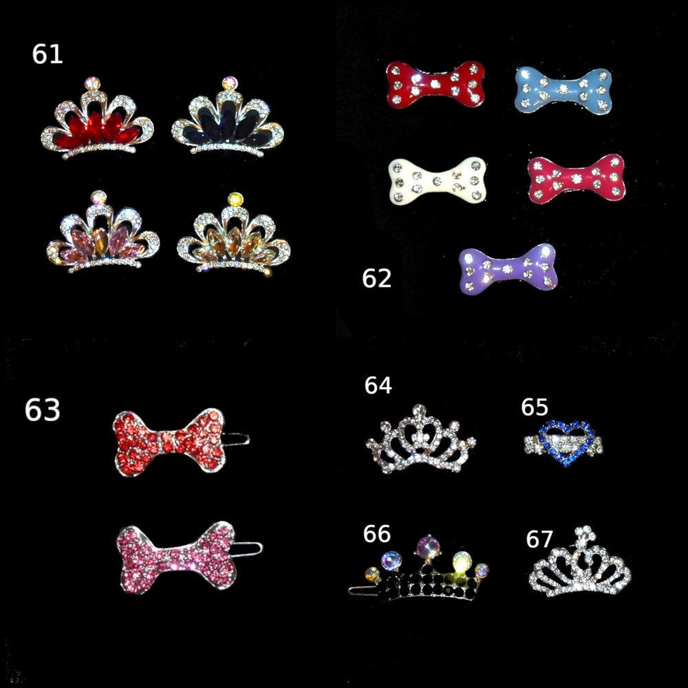 Each item will have either a french barrette or metal ball clip barrette attached. These all measure around 1.5"All of my hair barrettes can be used for pets with long hair, girls, women or for wedding accessories. I have been making barrettes and hair bows for over 20 years. Please check my store for more beautiful, stylish dog hair accessoriesCheck my store for more dog bows, pet hair bows, dog bow accessories, dog tiaras, rhinestone barrettes for dogs, DIY hair bow making accessories, scarf bows for women, oversized bows for ladies, hair bows for girls, tiny snap clips for dogs, craft items and much much more.IF YOU NEED YOUR ITEMS FOR A SPECIAL EVENT THEN EMAIL ME BEFORE ORDERING!