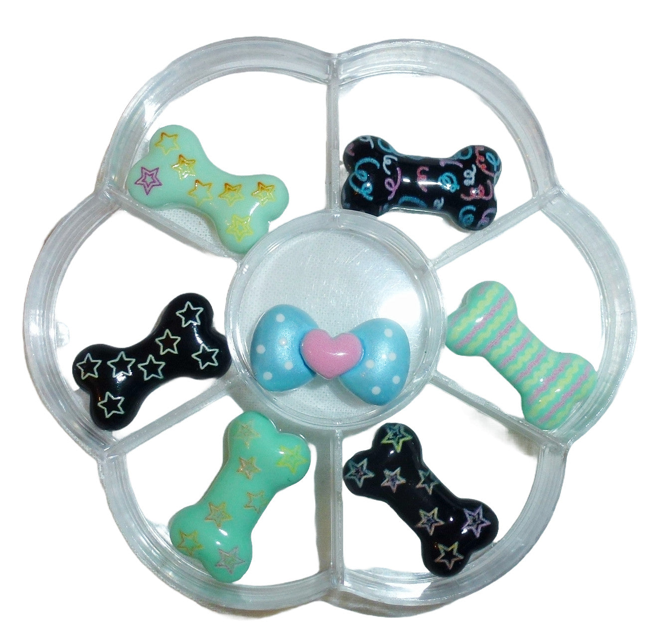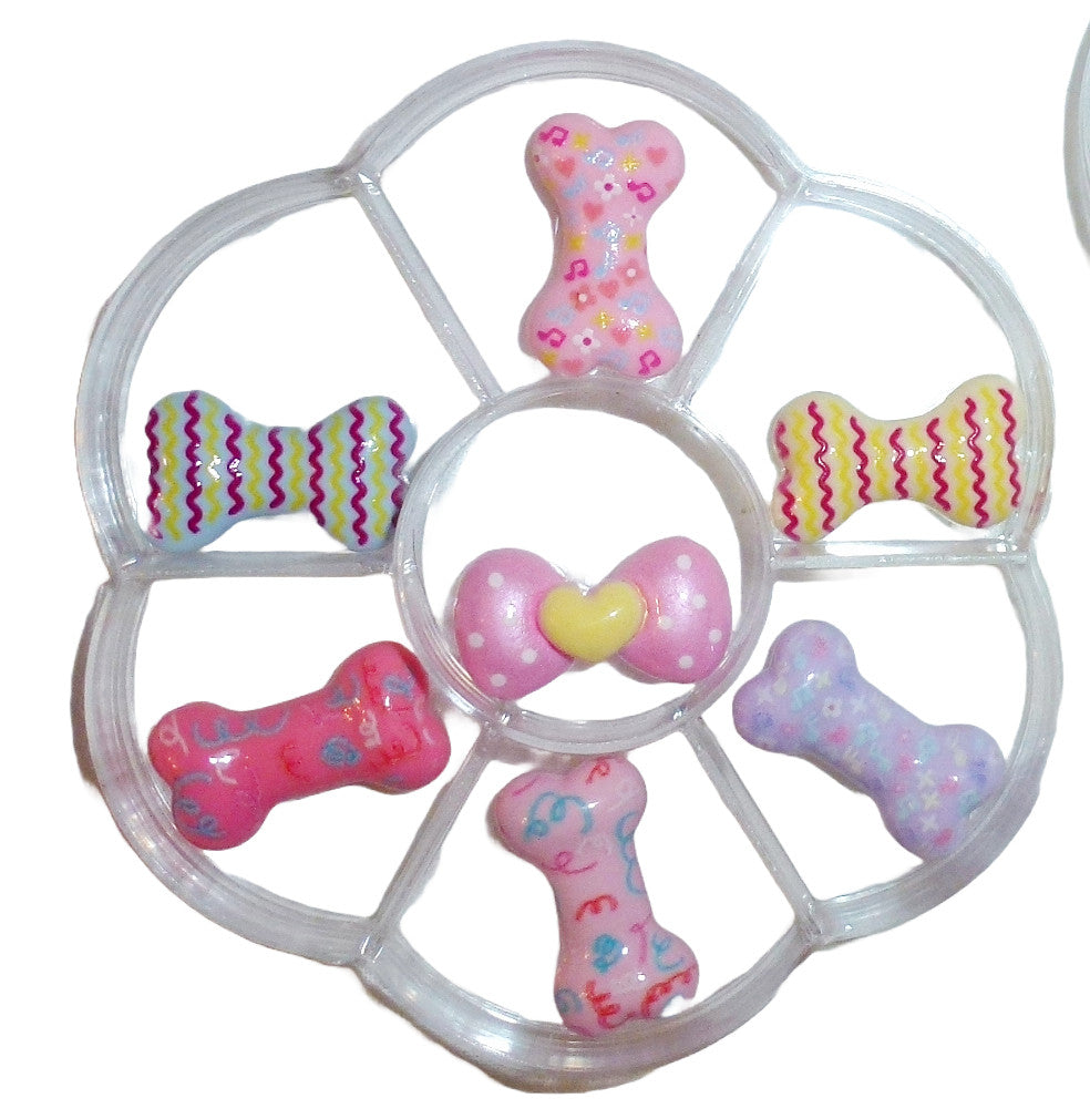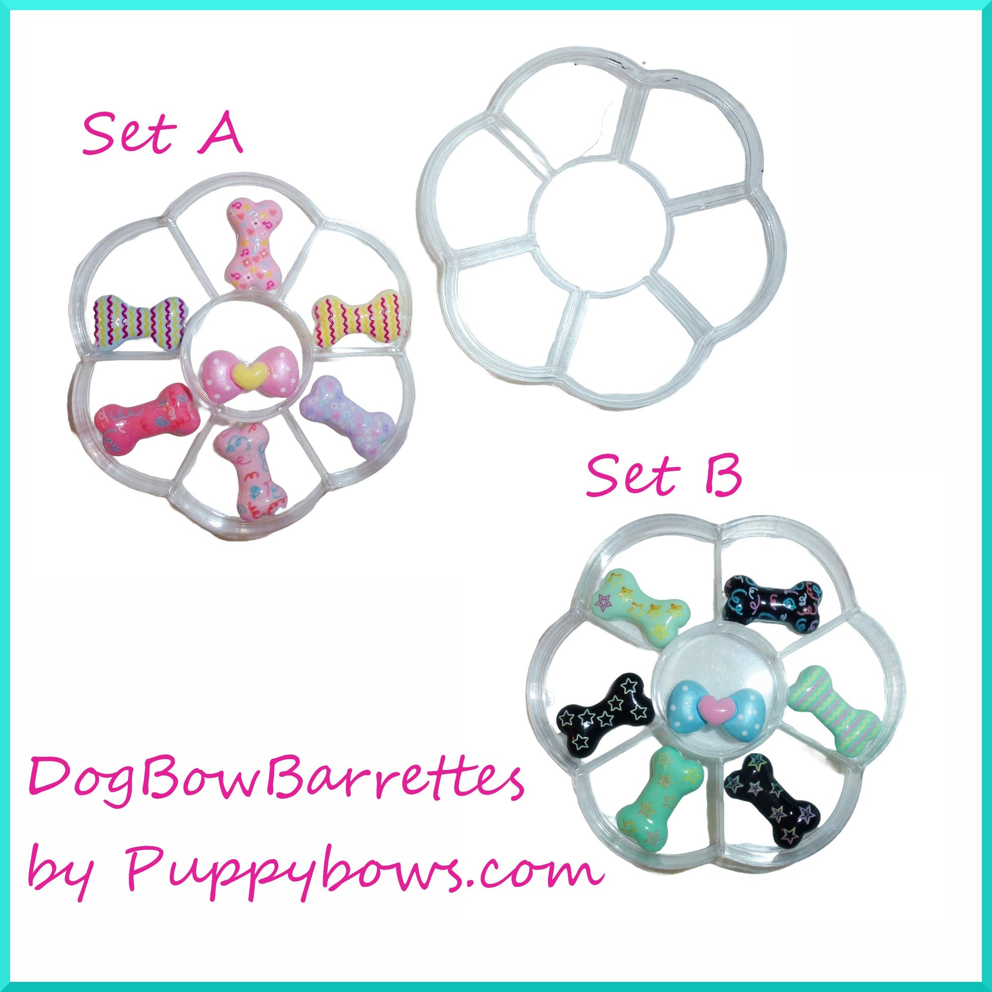 Puppy Bows flower box with 7 cute dog bone hair bow with latex bands or hair clip