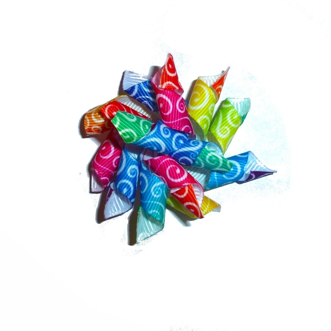 Puppy Bows Multi rainbow swirls Korker loop dog bow pet hair clip barrette or latex bands corky curly corker