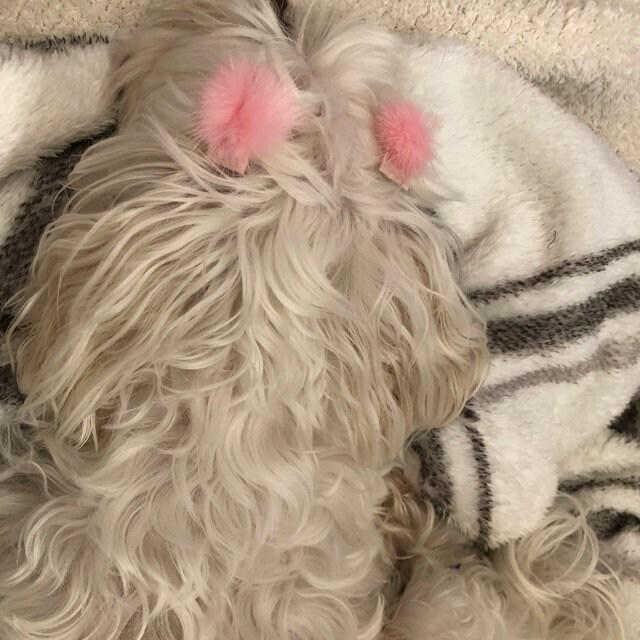 Puppy bows pairs tiny 1" fuzzy feather fur marabou ball puffs pet dog hair bow