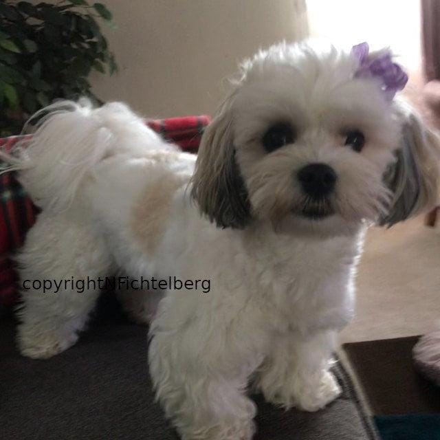 Party puffs are multi loop dog bows with a latex band attachment. They look like little package bows. This assortment is created with craft ribbon in winter colors, has at least 8 loops each. They measure slightly smaller than 2".