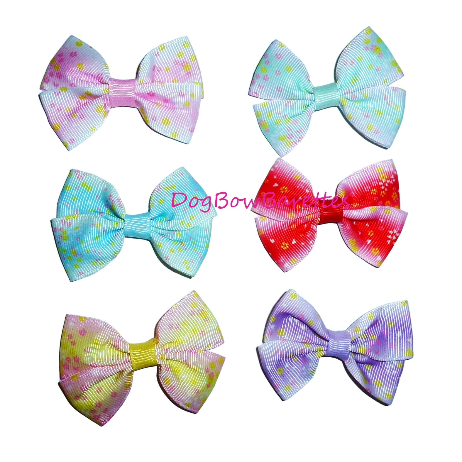 Puppy Bows ~ Set of 6 flower dot hair barrette or bands (FB112C)