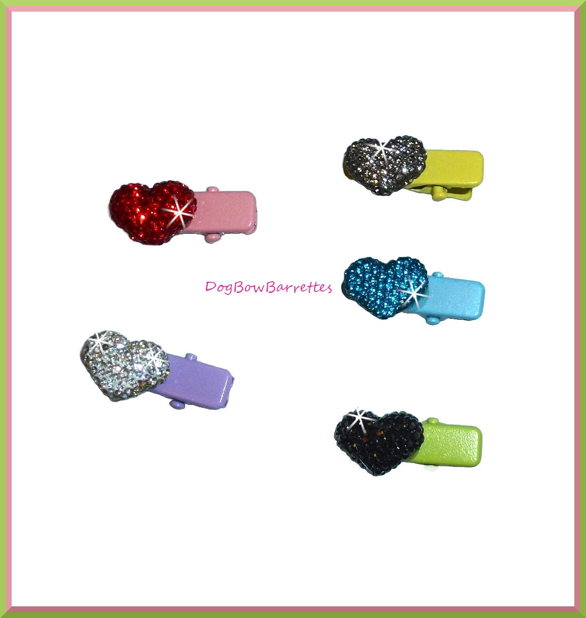 Puppy Bows ~ TINY 3/4" SET of 5 pieces! pave rhinestone hearts on alligator clips dog hair pet bow