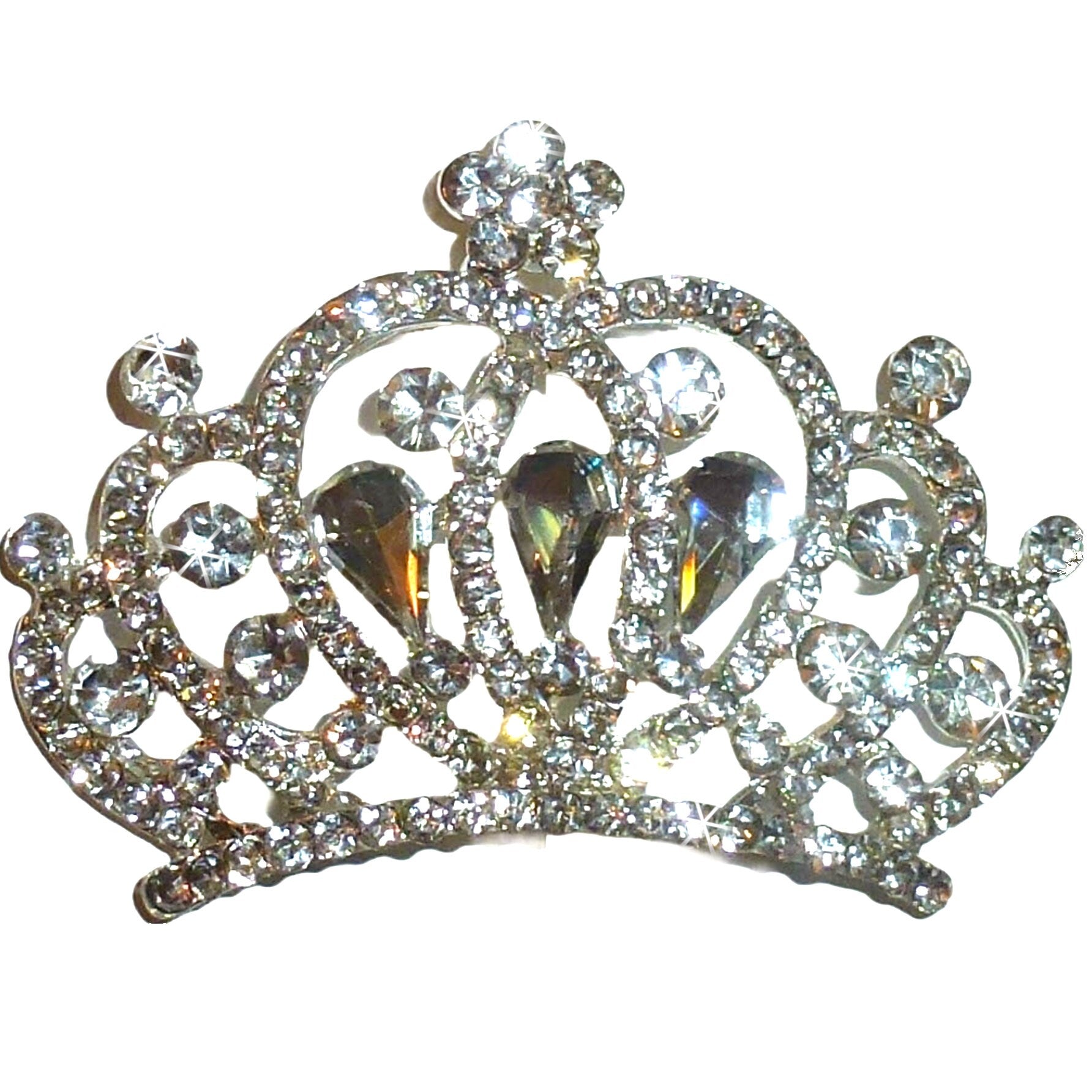 Puppy Bows triple teardrop tiara rhinestone pet hair barrette 2.25" (RB3A)