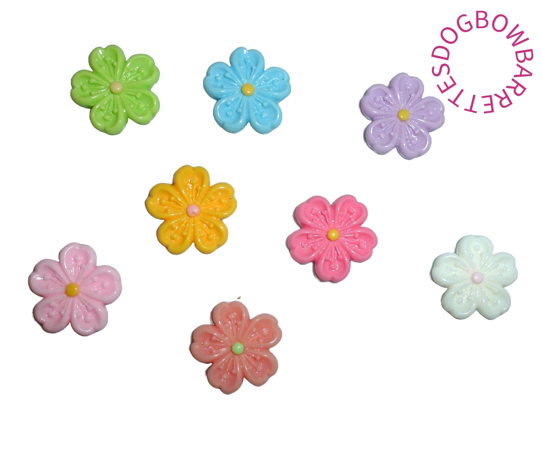 Puppy Dog Bows ~ Cute tiny sakura flowers plastic puppy clips pet hair bow barrettes or bands (fb414c)