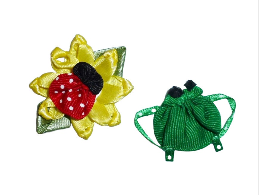 Puppy Dog Bows ladybug daisy flower frog ribbon sculpture pet hair show bow barrettes or bands (FB188e)