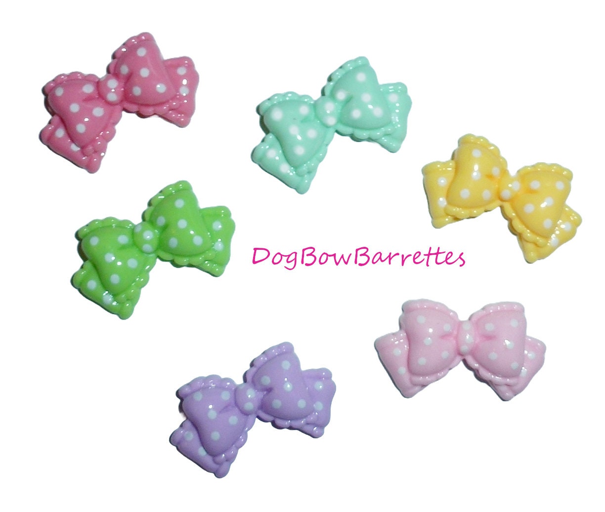 Puppy Dog Bows ~ Super cute pastel dots 1" color bowknot pet hair bow barrettes or bands (fb215C)