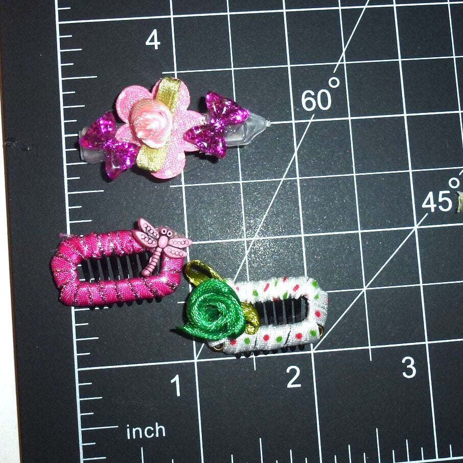 Puppy Dog Bows ~ Tiny flowers dragonfly on wrapped snap comb clip plastic puppy clips pet hair bow barrettes or bands (fb481F)