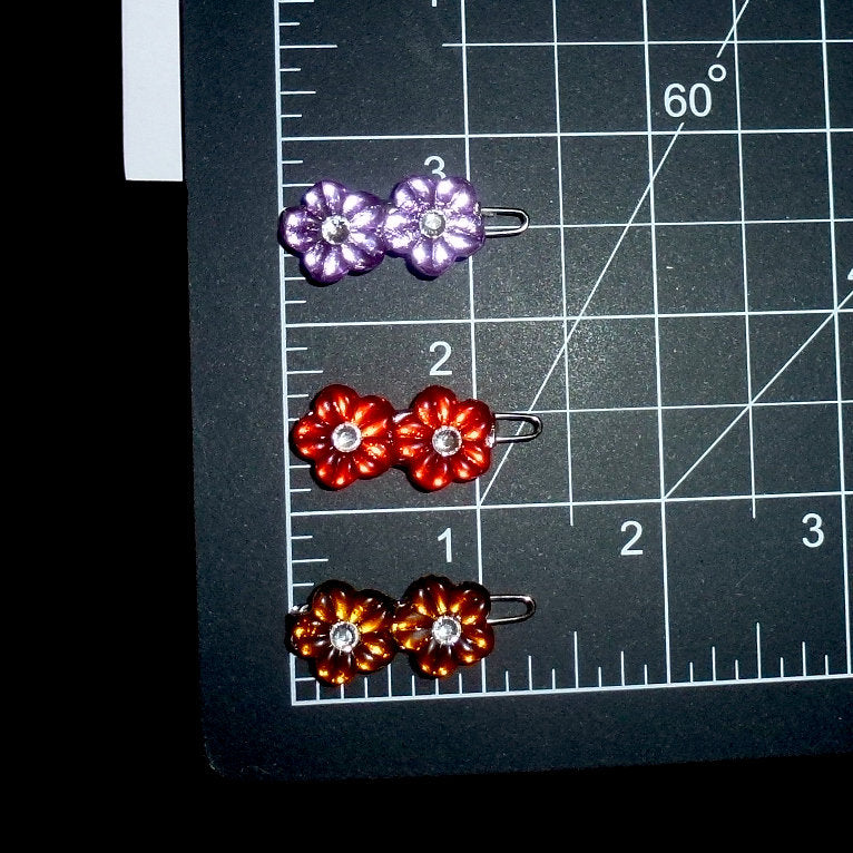 Measures 1" with 2 flowers on a plastic barrette clip