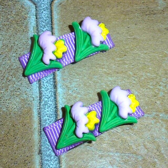Purple yellow tulip flower snap clip barrette pet hair dog bow (fb361Y)