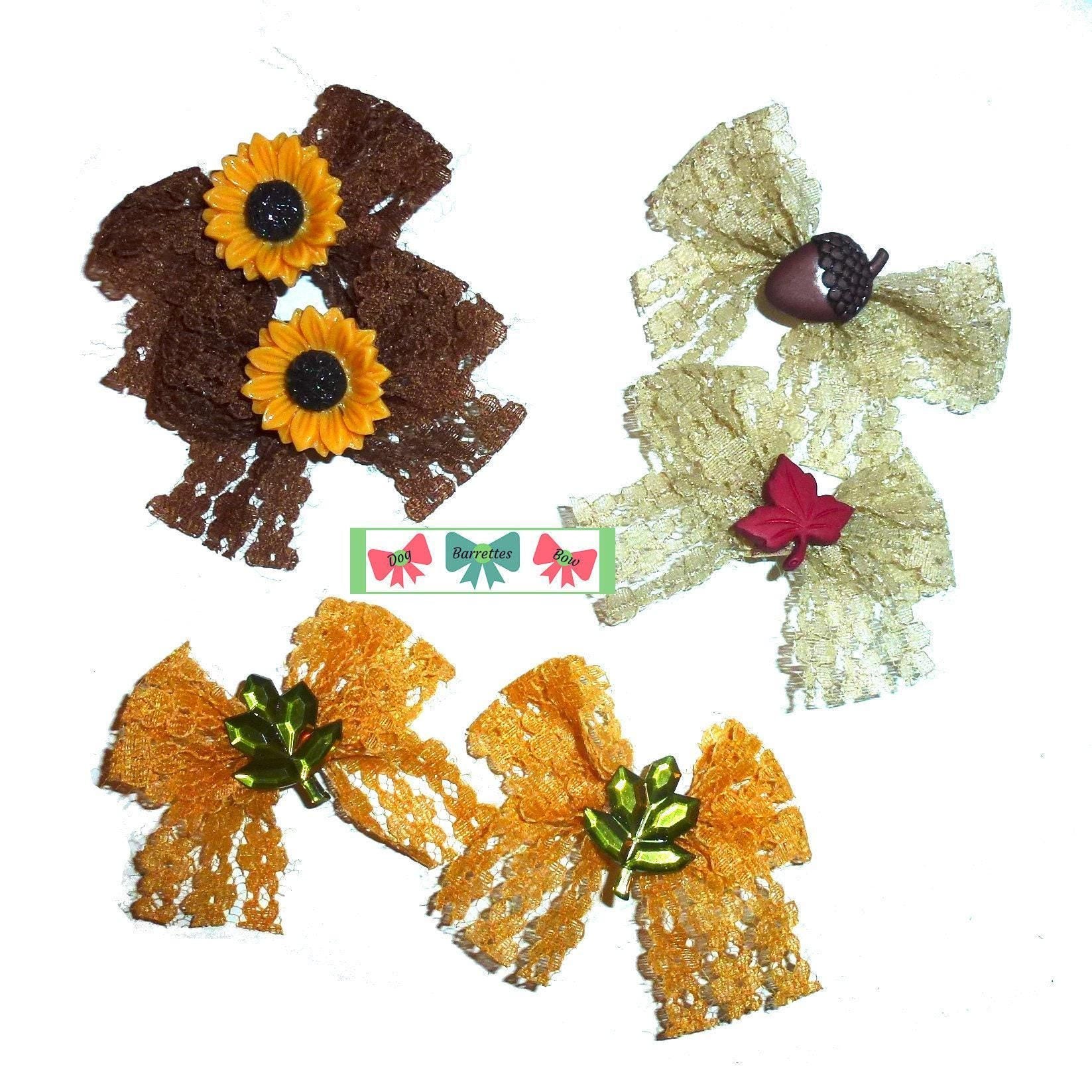 Thanksgiving fall lace pairs autumn dog bows hair bow barrettes bands (fb610)