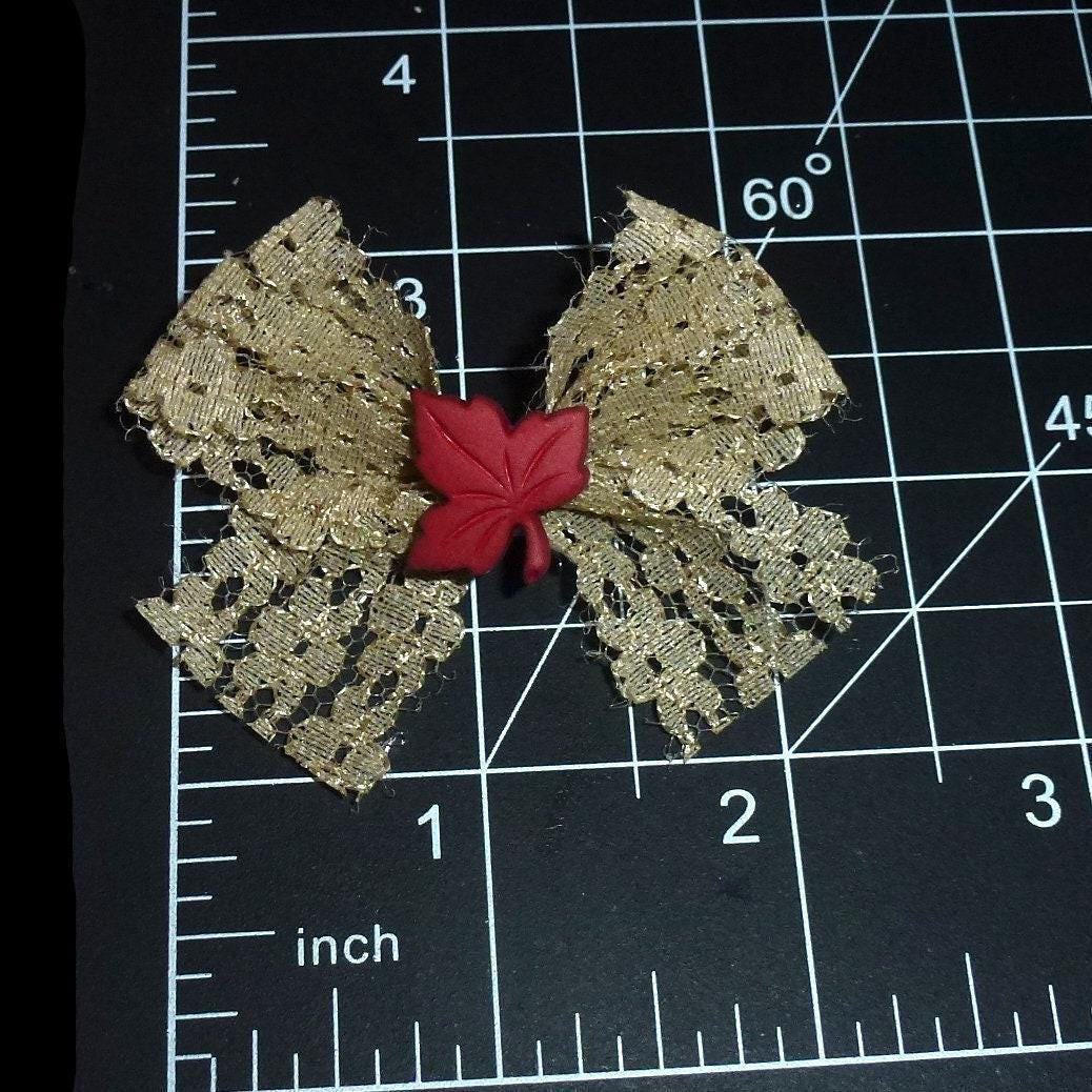 Set of 6 lace bows in Fall colors with themed center items. 2 bows of each color as shown for a total of 6 bows with your choice of finish.