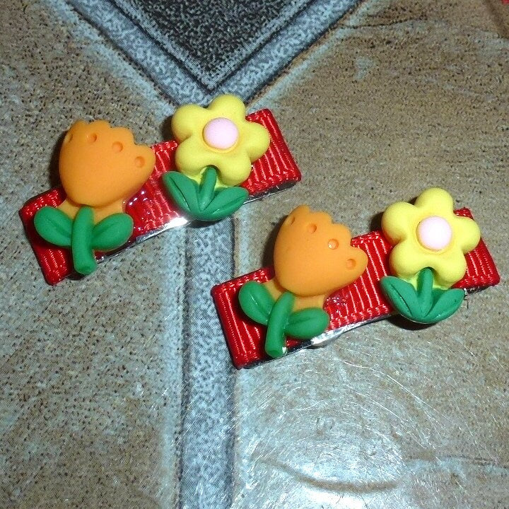 Yellow daisy orange tulip flower snap clip barrette pet hair dog bow (fb335A)